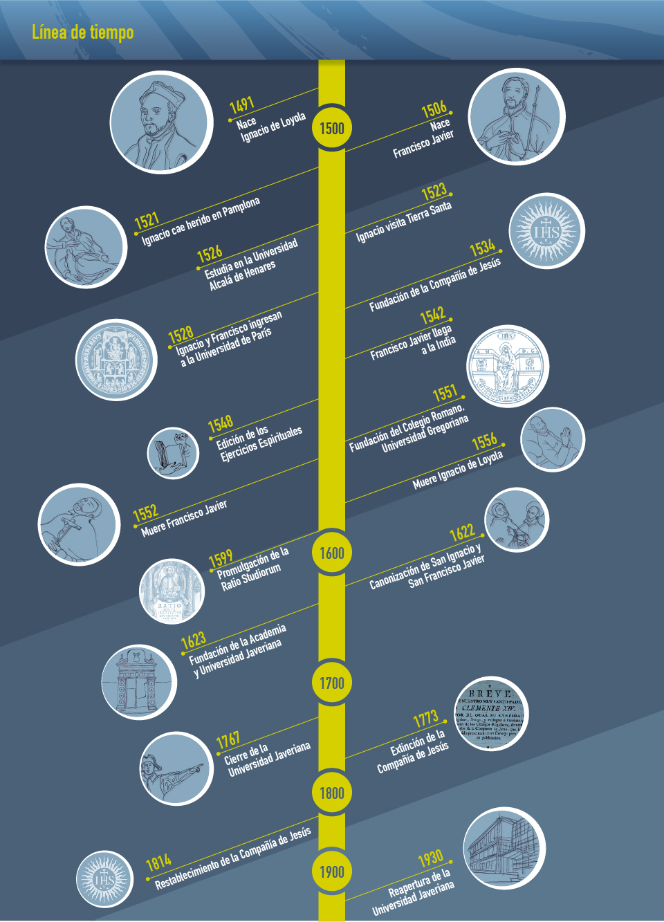 El Objetivo de este eje es profundizar en los fundamentos del carisma ignaciano y el conocimiento de la Compañía de Jesús.