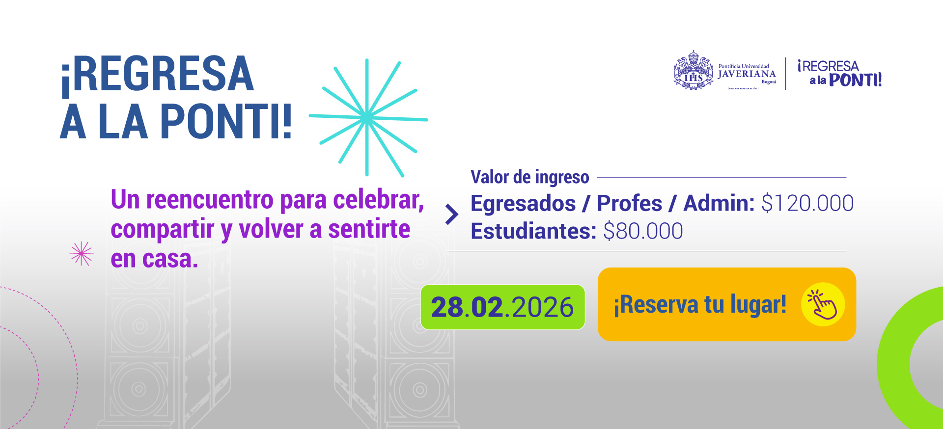 El Encuentro Regresa a la Ponti 2026 es una invitación a volver a casa, compartir con quienes hicieron parte de nuestra historia y disfrutar juntos como comunidad javeriana.