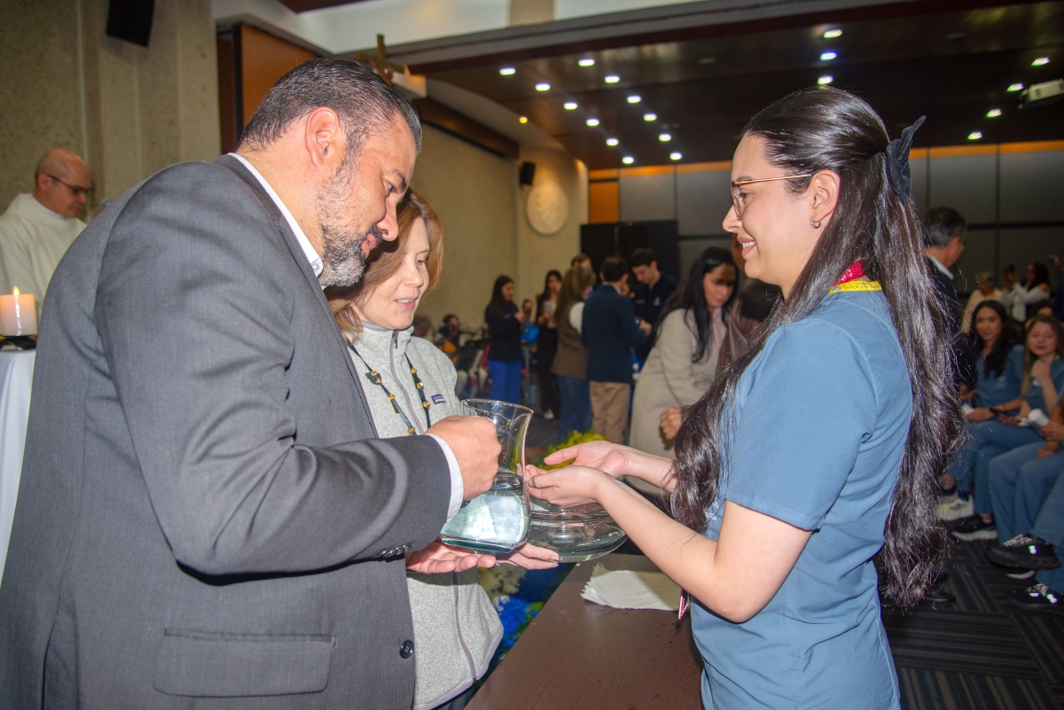 Filas de asientos con una oración impresa y una vela blanca encima, los estudiantes de Odontología de pregrado, posgrado y técnico laboral por competencias en salud oral, entran en fila, sonriendo a sus padres que los ven con orgullo, con sus uniformes en perfecto estado. No es solo una eucaristía, es el momento en el que se preparan para marcar su vida profesional y para el contacto con quienes más los necesitan: sus pacientes. Se trata de la Ceremonia de bendición de las manos.