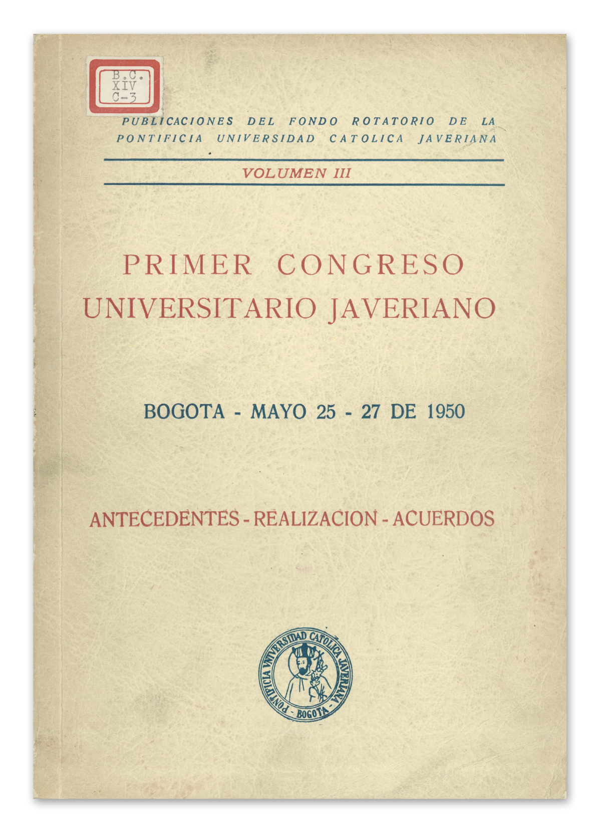 Memorias de congresos y seminarios de la Universidad, como organizadora o participante, que dan cuenta del nivel de los debates académicos en eventos nacionales e internacionales. Cabe destacar la memoria del Primer Congreso Universitario Javeriano – Bogotá – mayo 25-27 de 1950, antecedentes, realización, acuerdos, durante el rectorado del P. Emilio Arango, S.J., 1950.