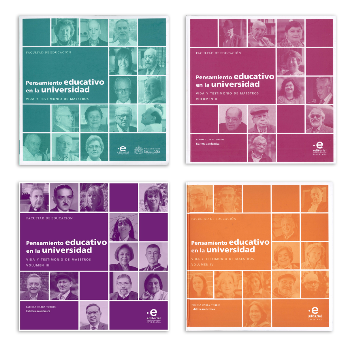 Pensamiento educativo en la Universidad. Vida y testimonio de Maestros, volúmenes I, II, III, IV. Editora Académica Fabiola Cabra Torres. En donde no solo se escribe, sino que se exalta la huella de grandes profesoras y profesores de la Universidad con sus cátedras, estudios y publicaciones, testimonios de su trayectoria en la enseñanza y magisterio en la Universidad, Vol. 1 – 2016; Vol. II – 2019; Vol. III – 2020; Vol. IV: 2023.